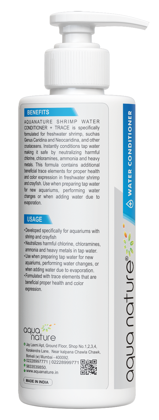 Aqua Nature Shrimp Water Conditioner + Trace is specifically formulated to optimize water quality for shrimp habitats. This 120 ml solution enhances essential trace elements, promoting shrimp health and vitality. It effectively removes harmful substances, ensuring a stable environment conducive to growth and reproduction, thus supporting a thriving aquatic ecosystem.