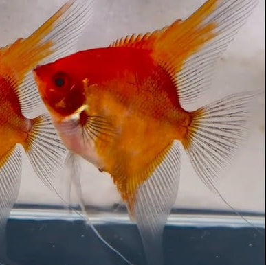 The Red Devil Angel is a striking freshwater cichlid prized for its bold coloration and dynamic personality. Featuring deep red hues with distinctive black markings, this species commands attention in any aquarium setup. Known for their intelligence and territorial behavior, Red Devil Angels thrive in spacious tanks with plenty of hiding spots and robust filtration. They require warm water conditions between 24-28°C and benefit from a varied diet of quality pellets and live foods. Best kept singly or in pairs, these impressive fish develop strong personalities and can live 10-15 years with proper care. Ideal for experienced aquarists seeking a captivating centerpiece fish.