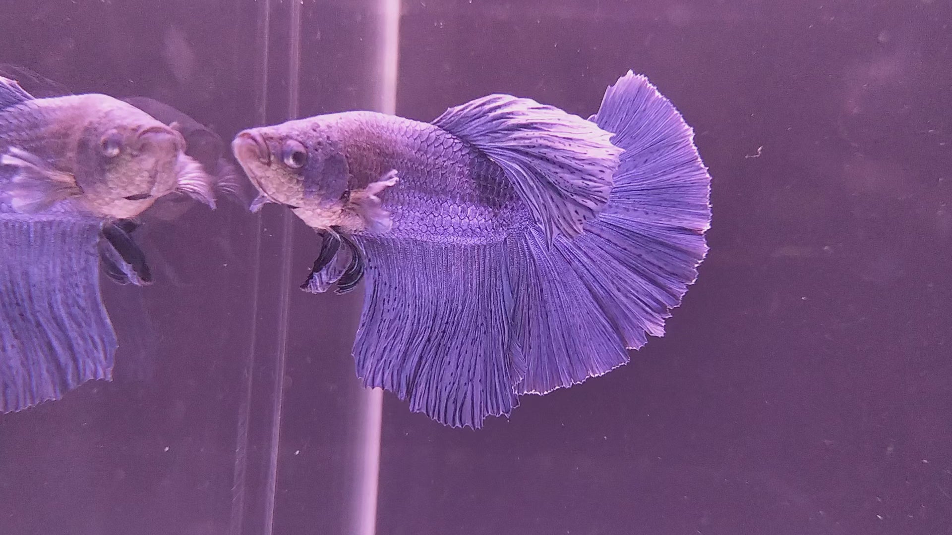 "Expertly designed for small tanks, the HALFMOON BLUE BETTA is the perfect addition to any aquatic environment. With its compact size and adaptability, this betta fish thrives in small spaces and will bring joy to any fish enthusiast. Enhance your tank with the unique beauty of the HALFMOON BLUE BETTA."
