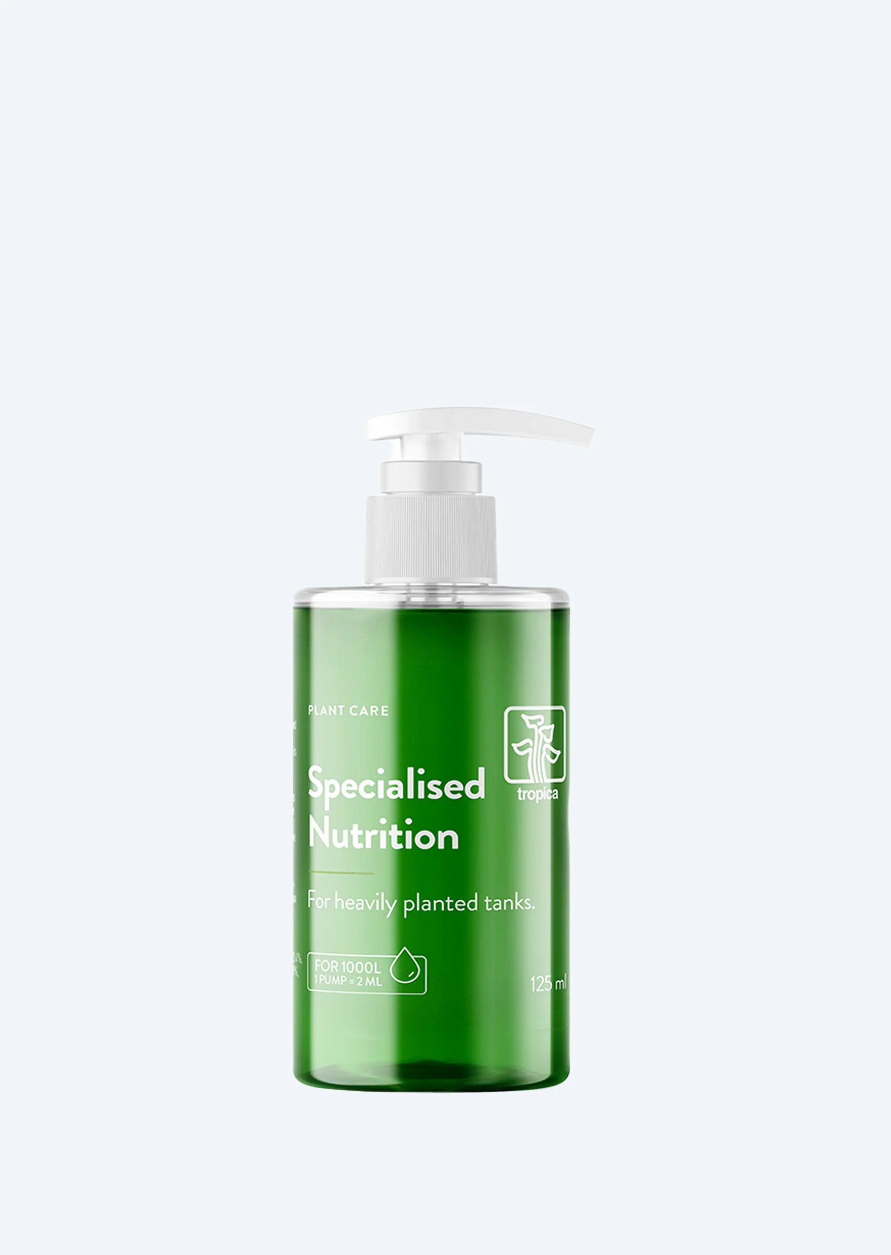 Specialised Fertiliser is added each week when the water is changed. We recommend 5 mL per 50 L water. However, we recommended that this is set in accordance with plant requirements. Specialised Fertiliser contains, in addition to micro-nutrients, all essential macro-nutrients. The fertilizer is particularly suitable where plants display a lack of nutrition. However note that if algae growth starts, Specialised Fertilser will promote this growth.